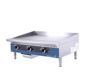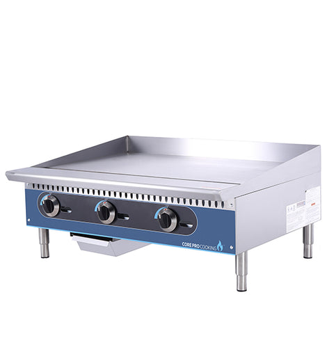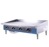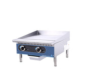 American gas griddles are known for their durability, efficiency, and even heating. They come in various sizes, from countertop models suitable for smaller kitchens to large standalone units for high-volume cooking.