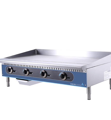 An American gas griddle typically refers to a cooking appliance commonly found in commercial kitchens or outdoor cooking setups. It's essentially a flat cooking surface powered by gas burners underneath. These griddles are versatile and can be used to cook a variety of foods such as pancakes, eggs, bacon, burgers, and grilled sandwiches.
