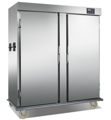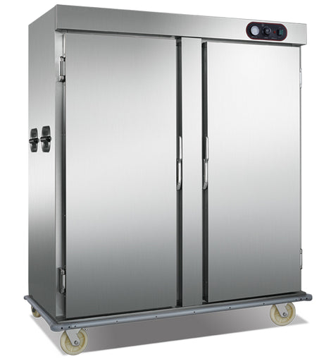 - Heavy-duty wheels swivel with brakes to move your fully loaded holding cabinet smoothly.