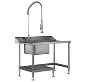- Hood type Dishwasher Need Detergents & Drier Dispenser and Inlet & Outlet Rack Table.