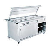 • Bain Marie maintains prepared foods at safe serving temperatures using a gentle water bath. Designed for buffets and catering lines, this unit holds more GN pans, allowing staff to serve multiple side dishes or sauces simultaneously.